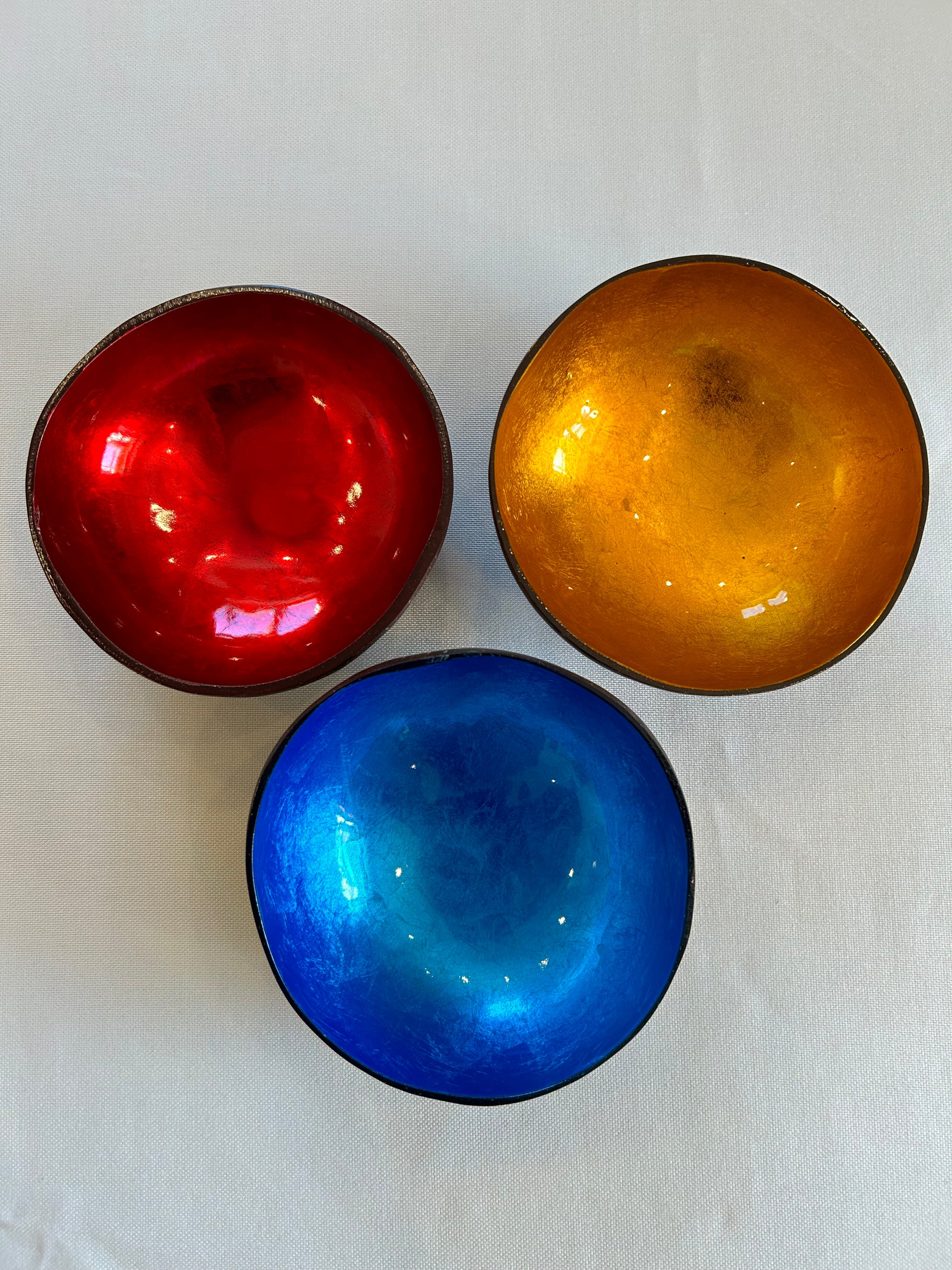 Die Kokosnussschalen werden sorgfältig geschnitten, gereinigt und geschliffen, bevor sie mit Bio-Kokosöl außen poliert werden. Jede Kokosnussschale ist von Natur aus ein Unikat, geprägt durch ihre individuelle Farbe, Form und Größe.